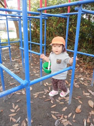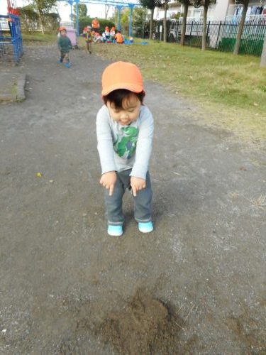 公園の端で、公園の外をずっと見つめているお友だちを発見