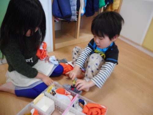 お外に遊びに行く前は、みんなとっても張り切って支度をはじめます♪
