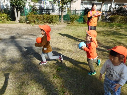 公園ではボール遊びをたのしんだり・・・
