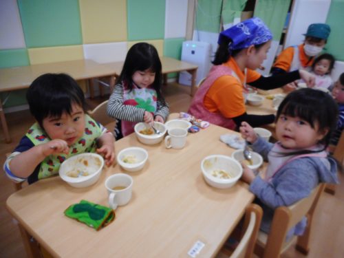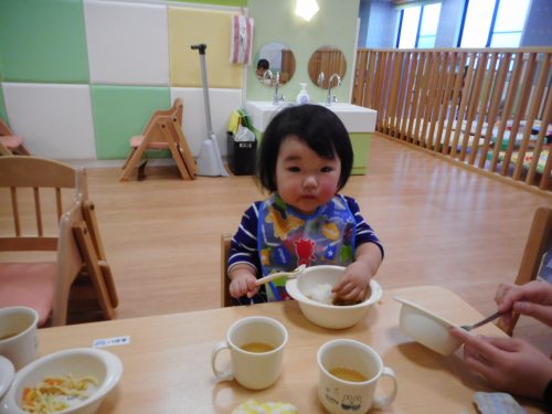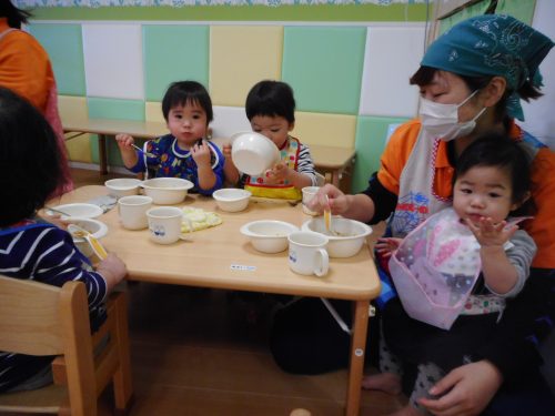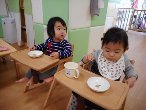 お友だちと食べるおやつやお給食はやっぱりおいしいね![]()