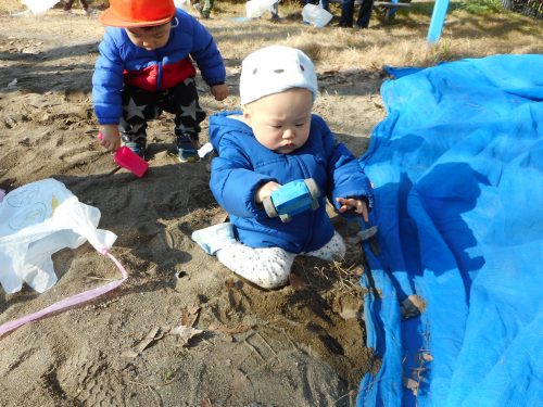 それを見ていた1歳児さんと0歳児さん、やりたい!と