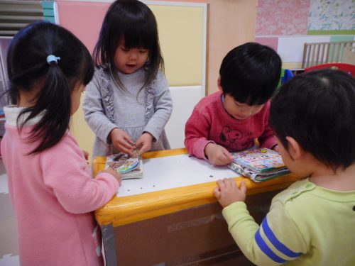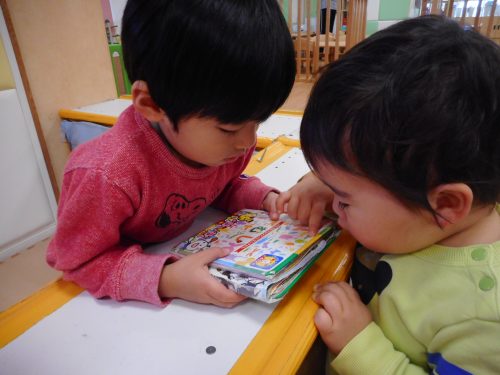 大好きな虫図鑑を見ながら、お友だちと虫の観察![]()
