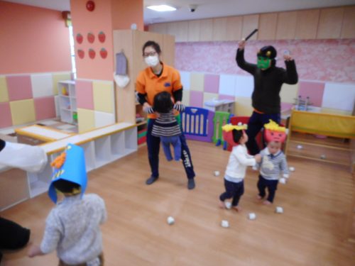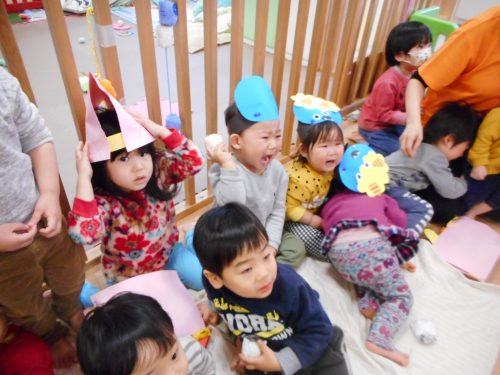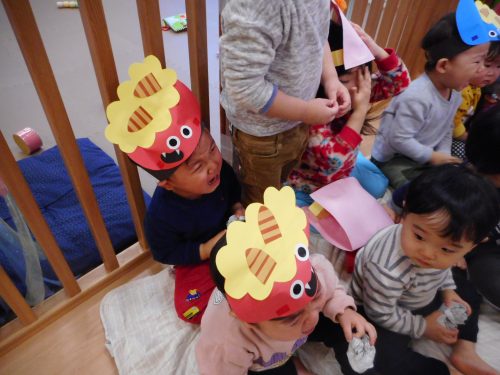 みんなで頑張って豆まきできたおかげで、鬼は帰っていきました。