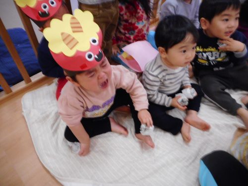 泣きながらも、しっかり豆を投げる姿も![]()