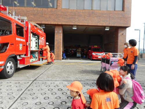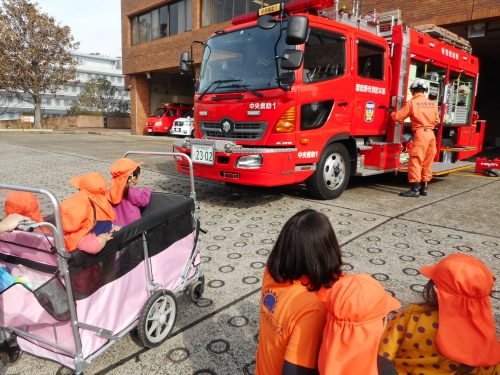 りんご組さんや、いちご組さんは夢中で消防士さんの動きを目で追っていました。