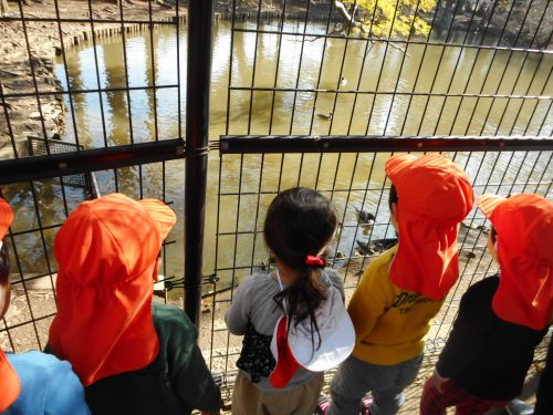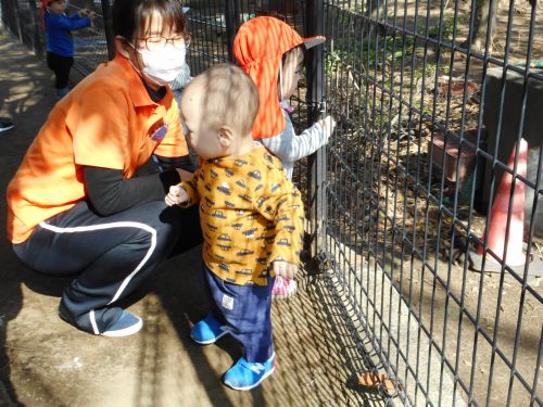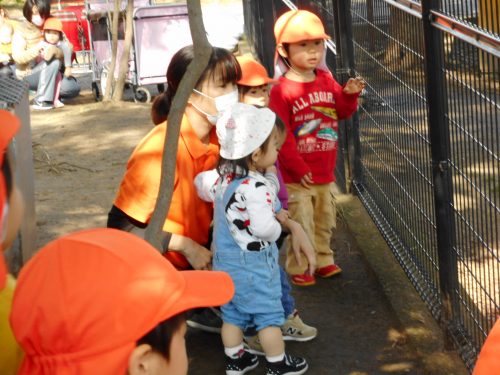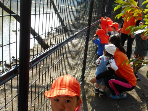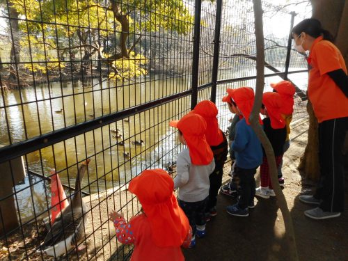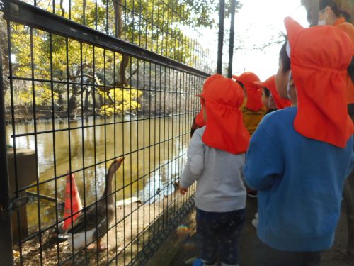 近くで見る鳥たちに、少し緊張気味の子ども達![]()