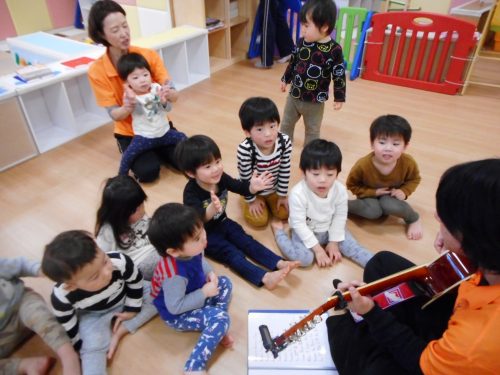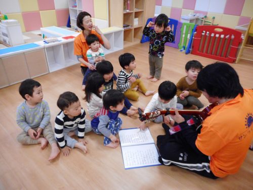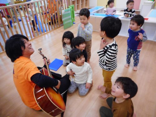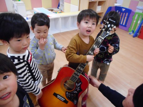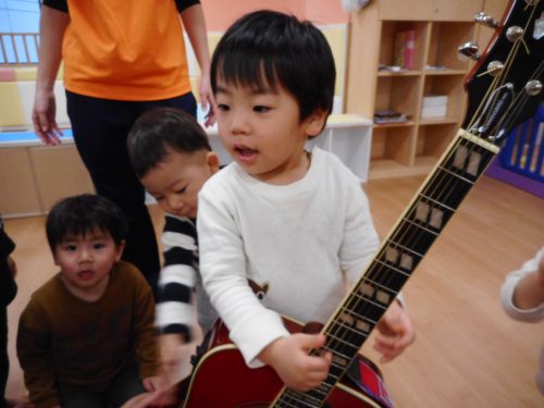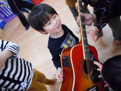 ギターに触れたり、アンパンマンの歌を歌ったり、みんな楽しかったのか
