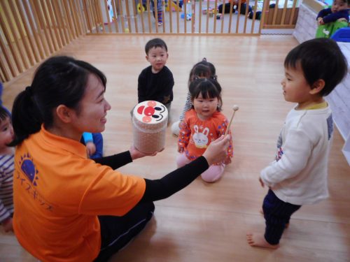 お名前を呼ばれてお返事と一緒に太鼓をたたく場面では