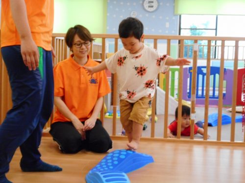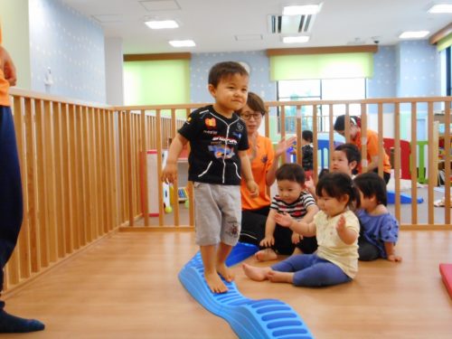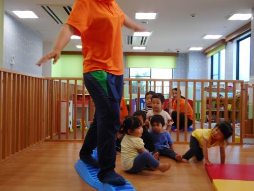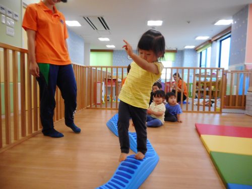 体操では、マットの上をコロコロと回ってみたり、一本橋を渡ったり、