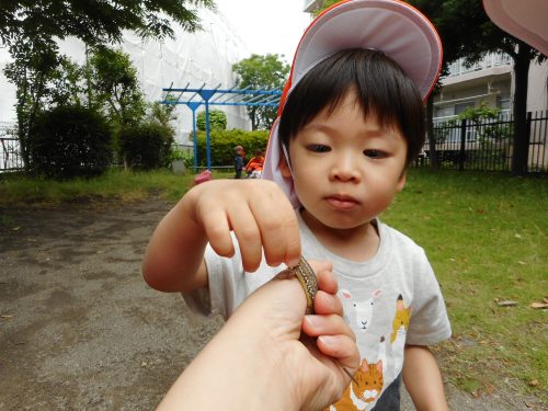 今週は晴れ間ものぞく日があり、公園あそびを楽しみました。