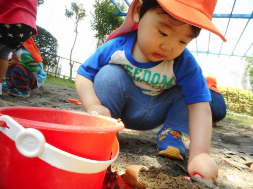 お砂場でせっせとご飯を作るお友だちの横では・・・