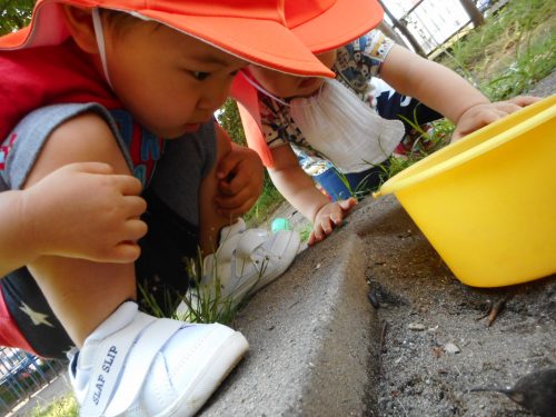 叫ぶ声を聞いて、いつもと違う雰囲気を感じた子ども達。
