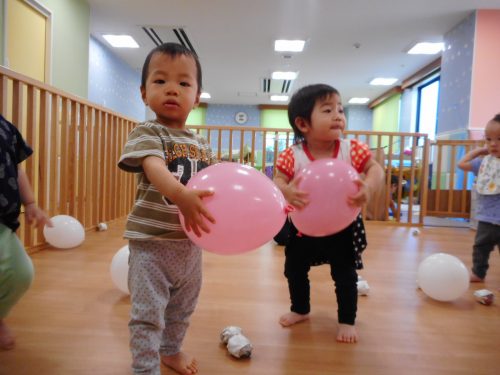今週は、保育室で風船遊びを楽しみました![]()