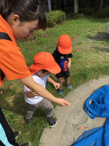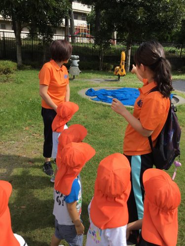 公園に着くと、保育者のお話をしっかり聞いてくれていました。