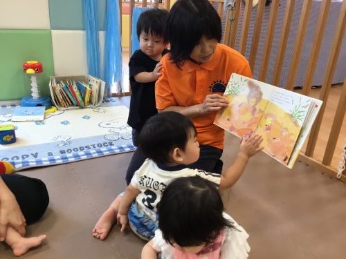 ももぐみさんもお散歩んの後は『どんぐりころちゃん』の絵本を楽しんでいました![]()