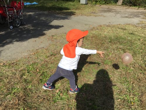 投げるのが上手になったのを見てほしかったようです![]()