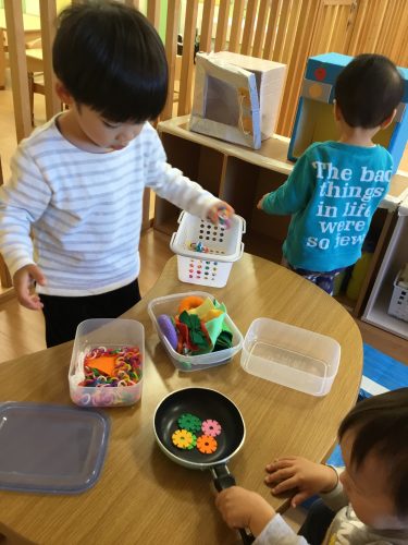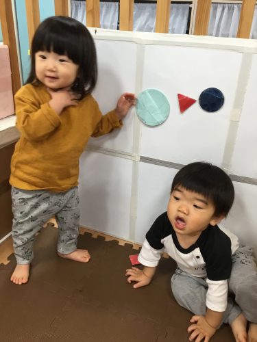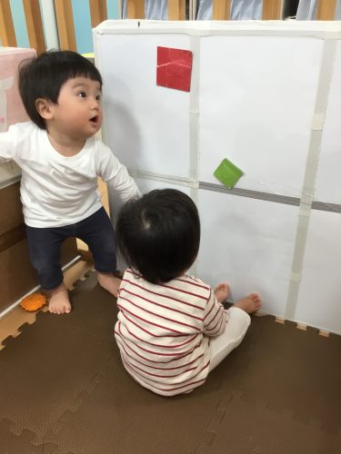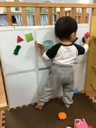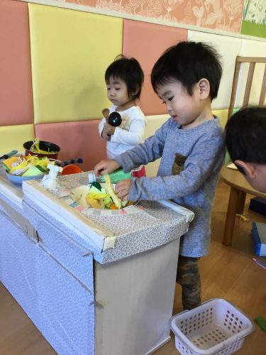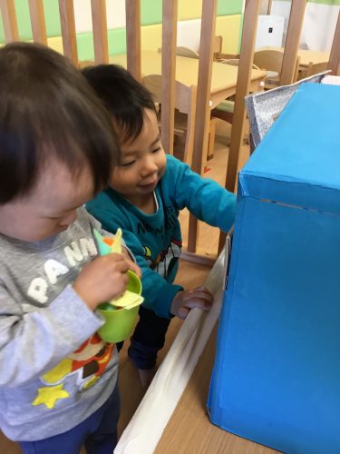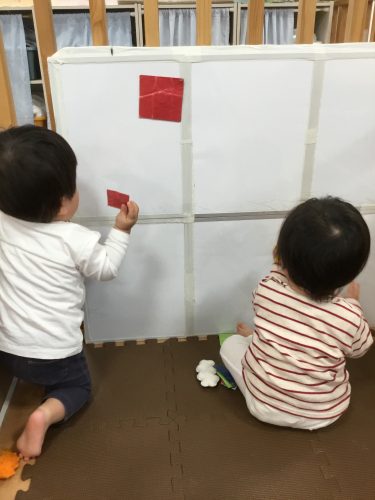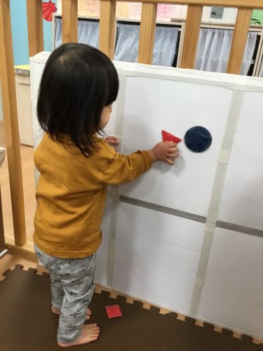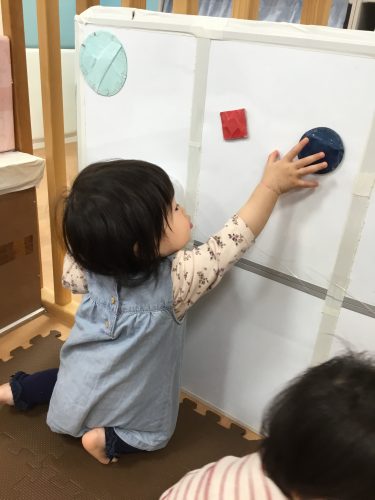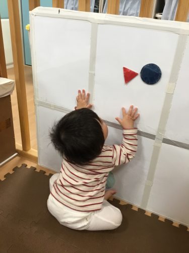 ももぐみさんは・・・保育者手作りの新しい玩具に夢中でした