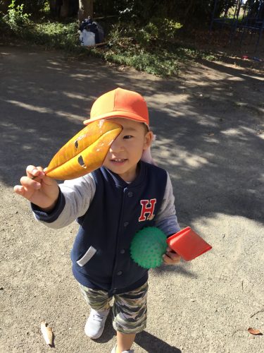 戸外遊びでも落ち葉で葉っぱオバケを作ってみたりと、