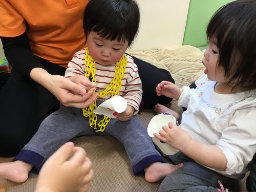もも組さんもみんなでペタペタとシール貼りをしています![]()