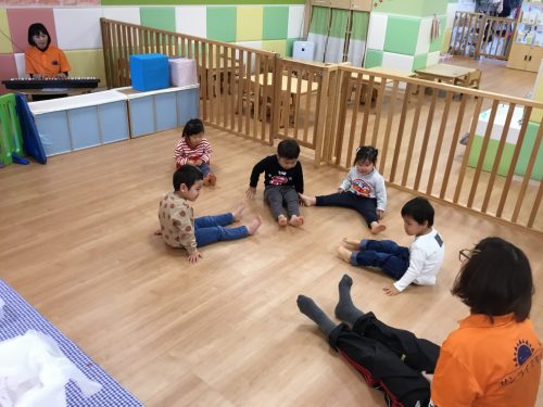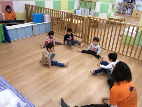 リズムに合わせて足を動かしたり、体で表現する りんご組さんです![]()