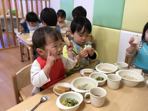 たくさん遊んだ後は手を洗って楽しい給食です![]()