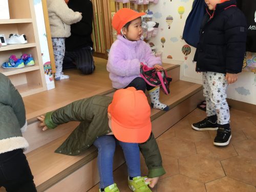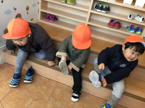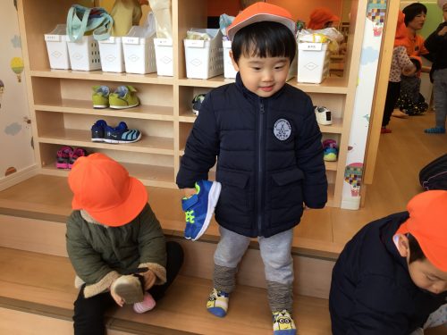 お散歩に行くと分かるとみんなとても張り切って自分で支度をはじめます![]()