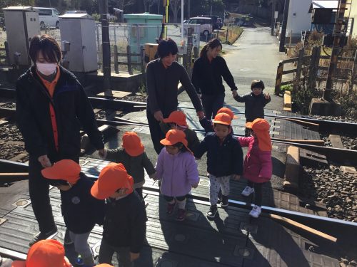 足元をしっかり見て踏切を渡ります![]()
