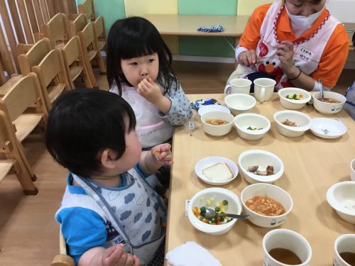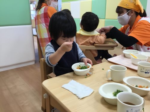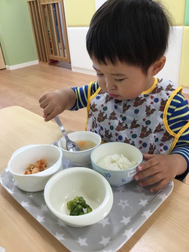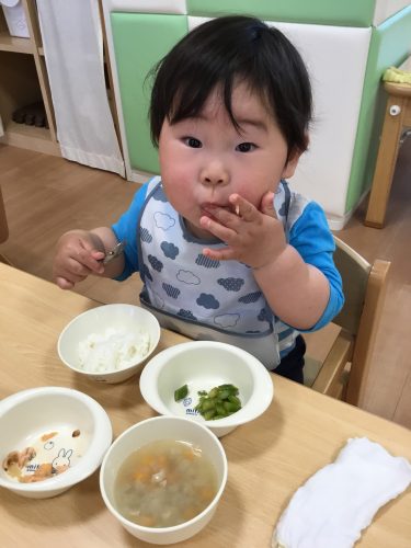 給食の時間は一生懸命なかわいい姿がたくさん見られます。