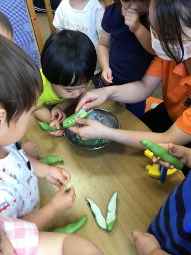 もも組さんも“にぎにぎ”してそら豆の感触を