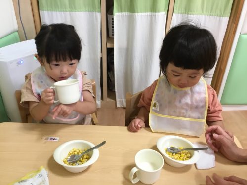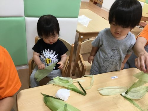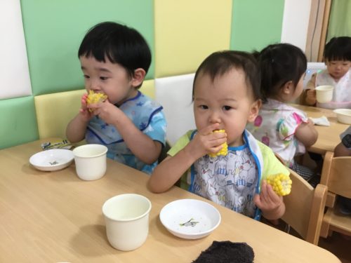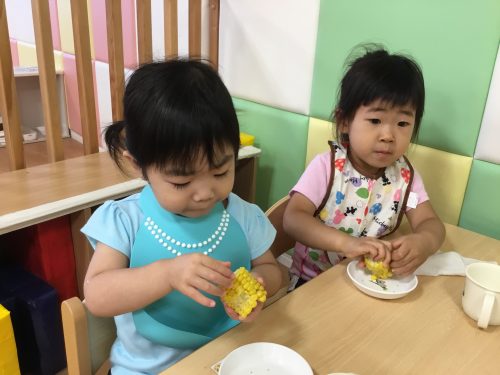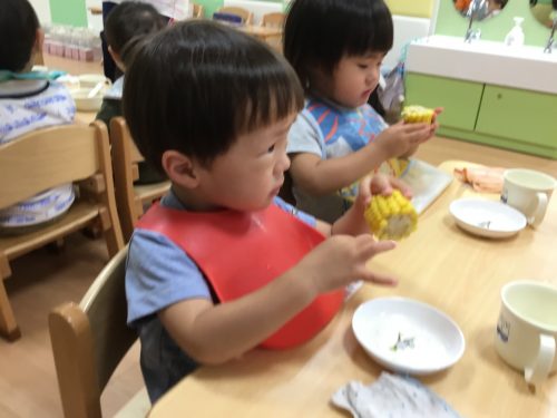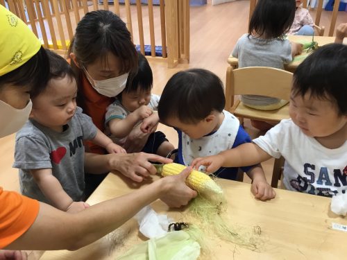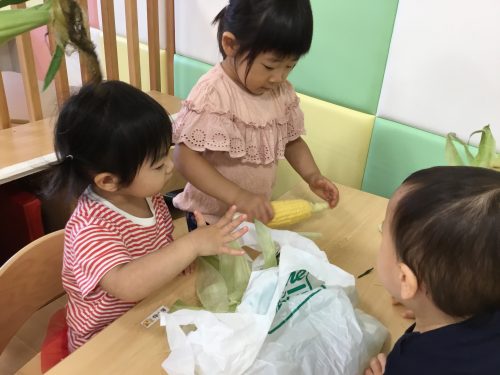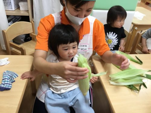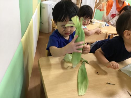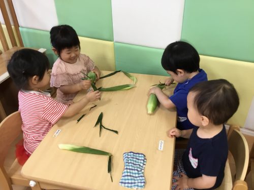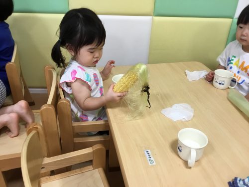 今週はトウモロコシの皮むきのお手伝いもしました![]()