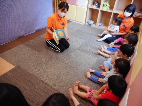 絵本からさつまいもが土の中で育つのを知った子どもたち![]()