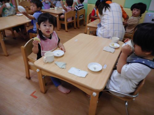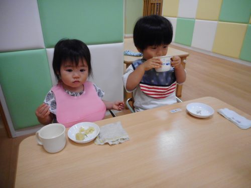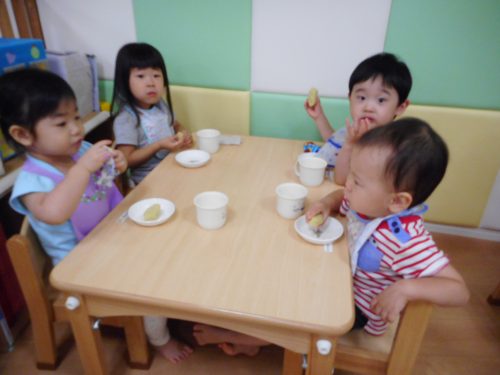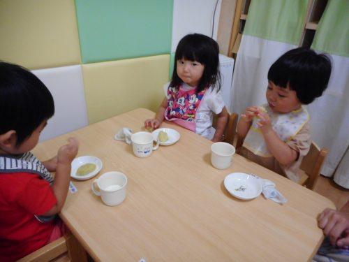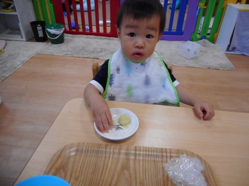お昼寝の後は、やさいの絵本にのっていた さつまいもを使った