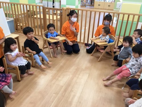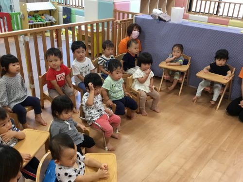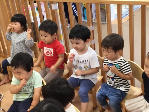 お祝いのお歌や、おめでとうの拍手をされて嬉しそうな