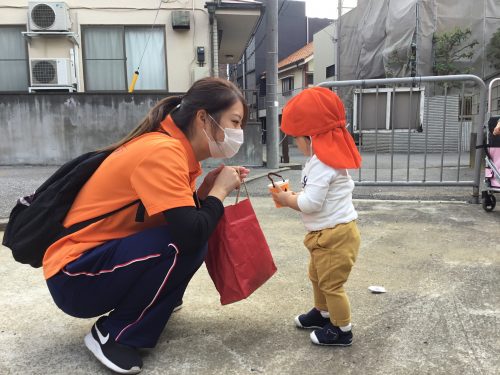 今日はお菓子のお土産持って帰ってね![]()