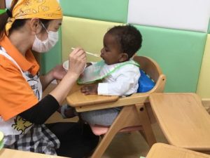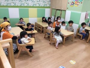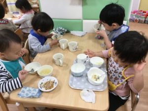 絵本の後のお給食も待ち遠しい時間ですね![]()