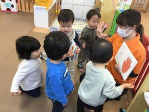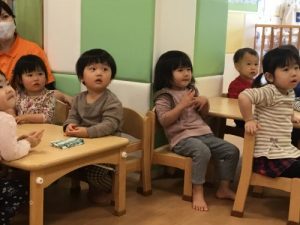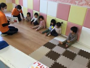 今日の朝のおやつ前の絵本の時間![]()