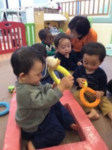 寒い北風にも子どもたちはお友達のように楽しんでいて