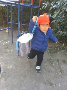公園をたくさん走って凧揚げするいちご組さん