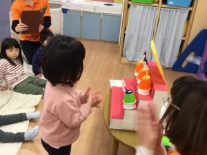 上手に飾る女の子に拍手している姿が可愛らしかった