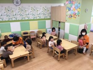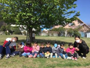 りんご組さんは今週はちょっと気分転換に公園で朝の会を