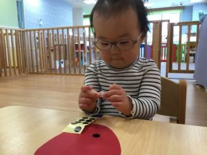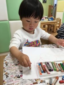 真剣な表情で、思い思いにクレヨンを動かしていますね。