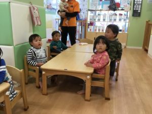 だるまさんの絵本を読むと、体をゆらゆらさせるもも組さん?