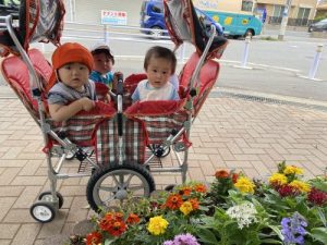 今週はペチュニアの苗植えもお手伝いしてくれました![]()