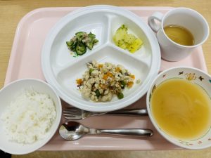 ※今日は、粉吹芋をたくさん食べてくれました!じゃが芋には、ビタミンCがたくさん含まれています。じゃが芋の中のビタミンCは、でんぷんに守られているので加熱しても壊れにくいそうです。