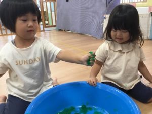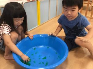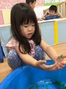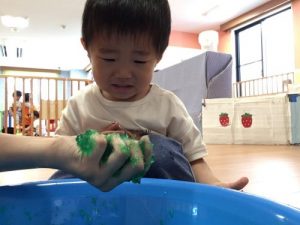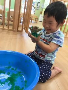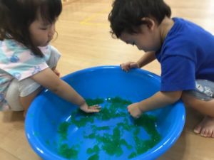 ゼリーのような不思議な感触に興味津々な子どもたち![]()