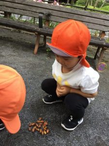お兄さんお姉さんが一生懸命探してきたどんぐりを触って