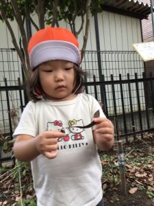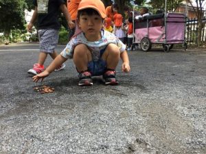 お兄さんお姉さんが見つけてくれたダンゴムシには、ちょっとびっくりしたようです