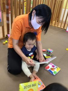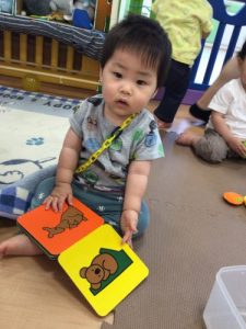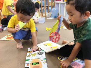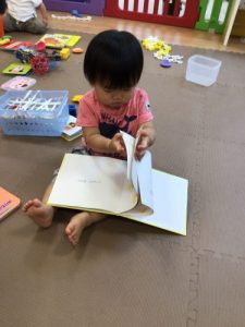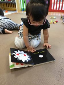 お散歩に行く前も絵本に夢中です
