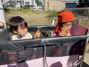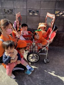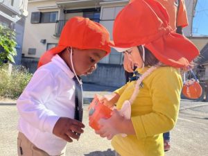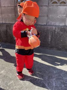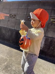 今日のお散歩では「トリックオアトリート‼️」と言いながら歩きました