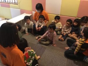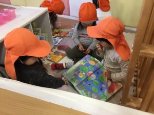 「お散歩で見つけたのはどれかな?」と、お話しながら果物の絵本を読みました?